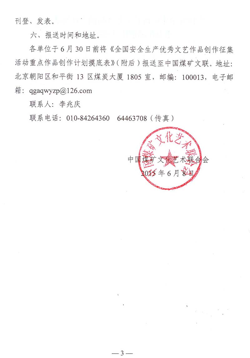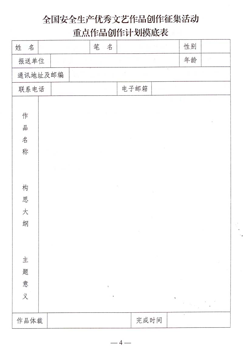 关于报送全国安全生产优秀文艺作品创作征集活动重点作品创作计划的通知 来源: 作者: 时间:2015-06-12 【字体:小 大】 附件:全国安全生产优秀文艺作品创作征集活动重点作品创作计划摸底表 智能标签: 安全生产 文艺作品 创作 征集 相关内容 分享到: 【打印正文】