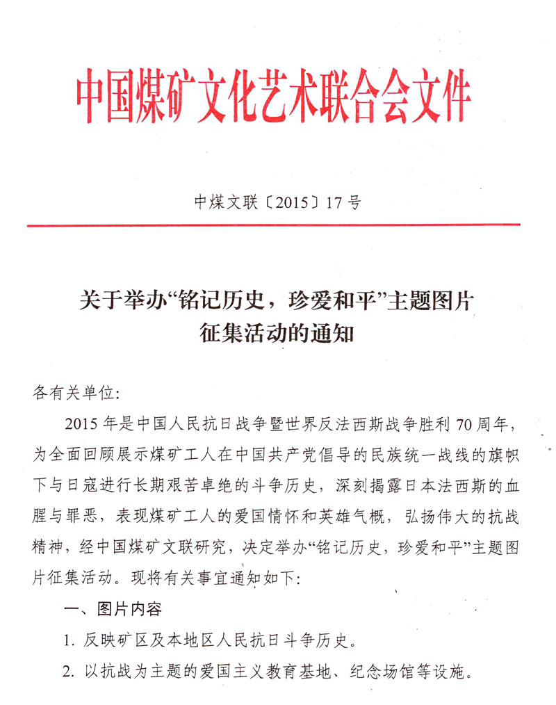 关于举办“铭记历史,珍爱和平”主题图片征集活动的通知