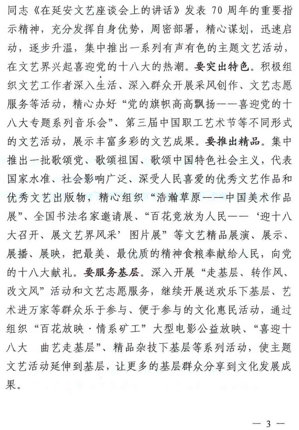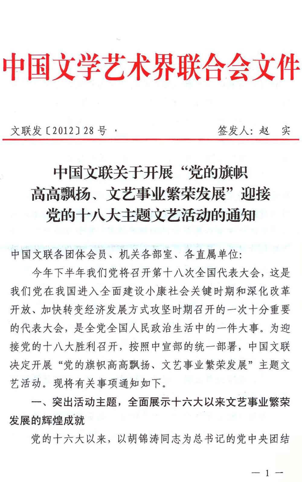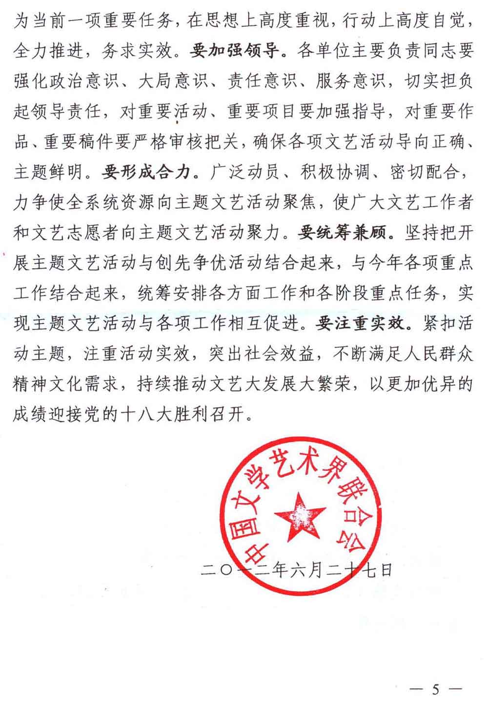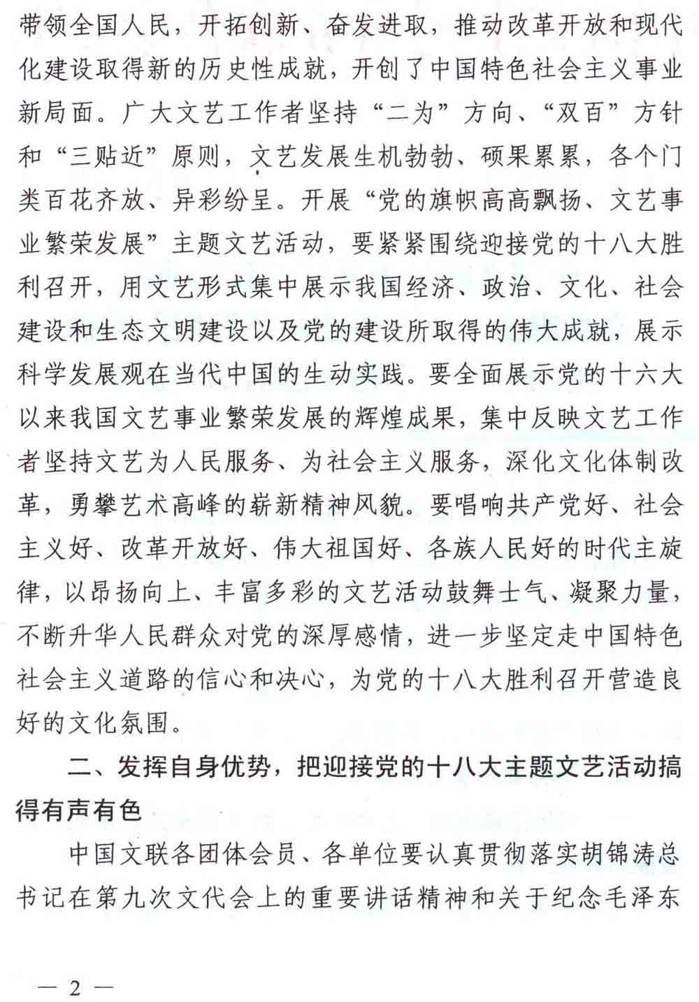 中国文联关于开展“党的旗帜高高飘扬、文艺事业繁荣发展”迎接党的十八大主题文艺活动的通知