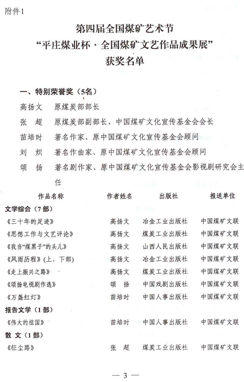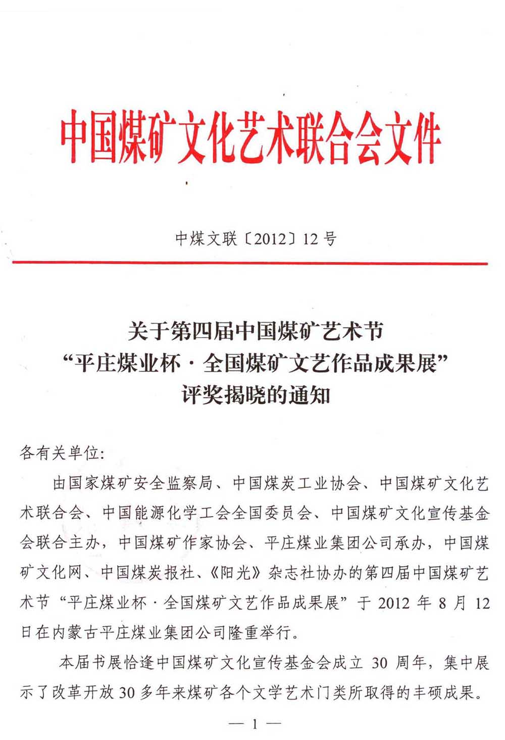 关于第四届中国煤矿艺术节“平庄煤业杯·全国煤矿文艺作品成果展”评奖揭晓的通知