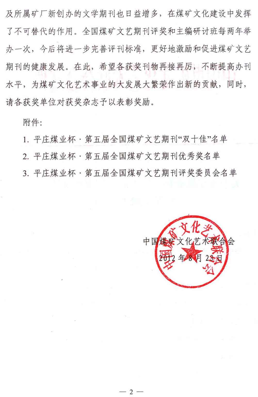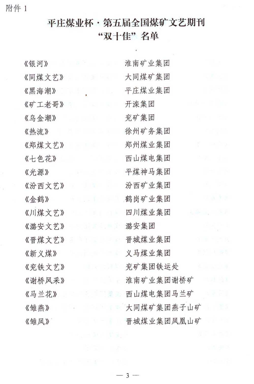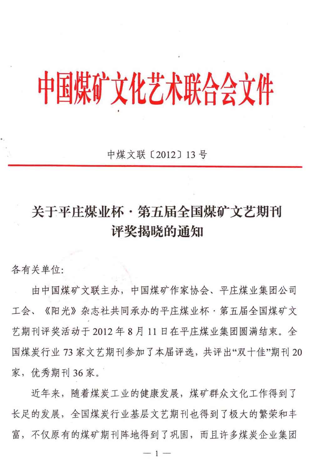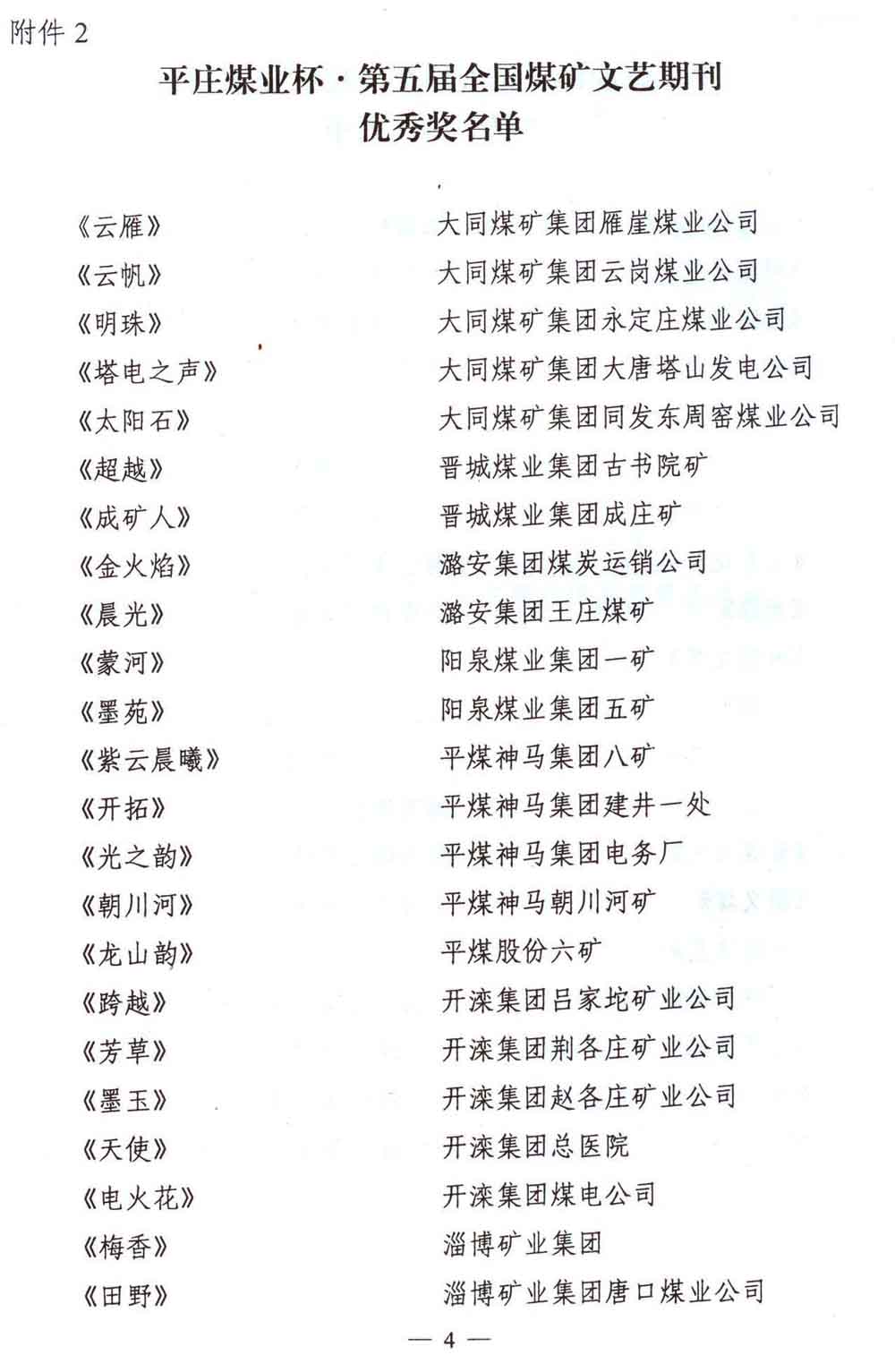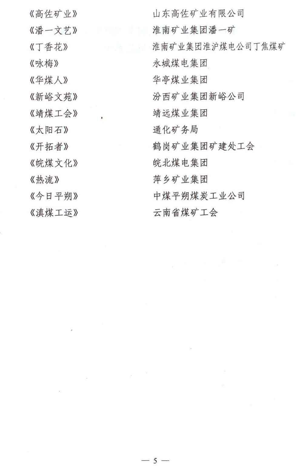关于平庄煤业杯·第五届全国煤矿文艺期刊评奖揭晓的通知