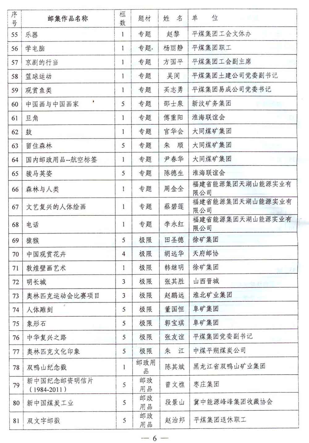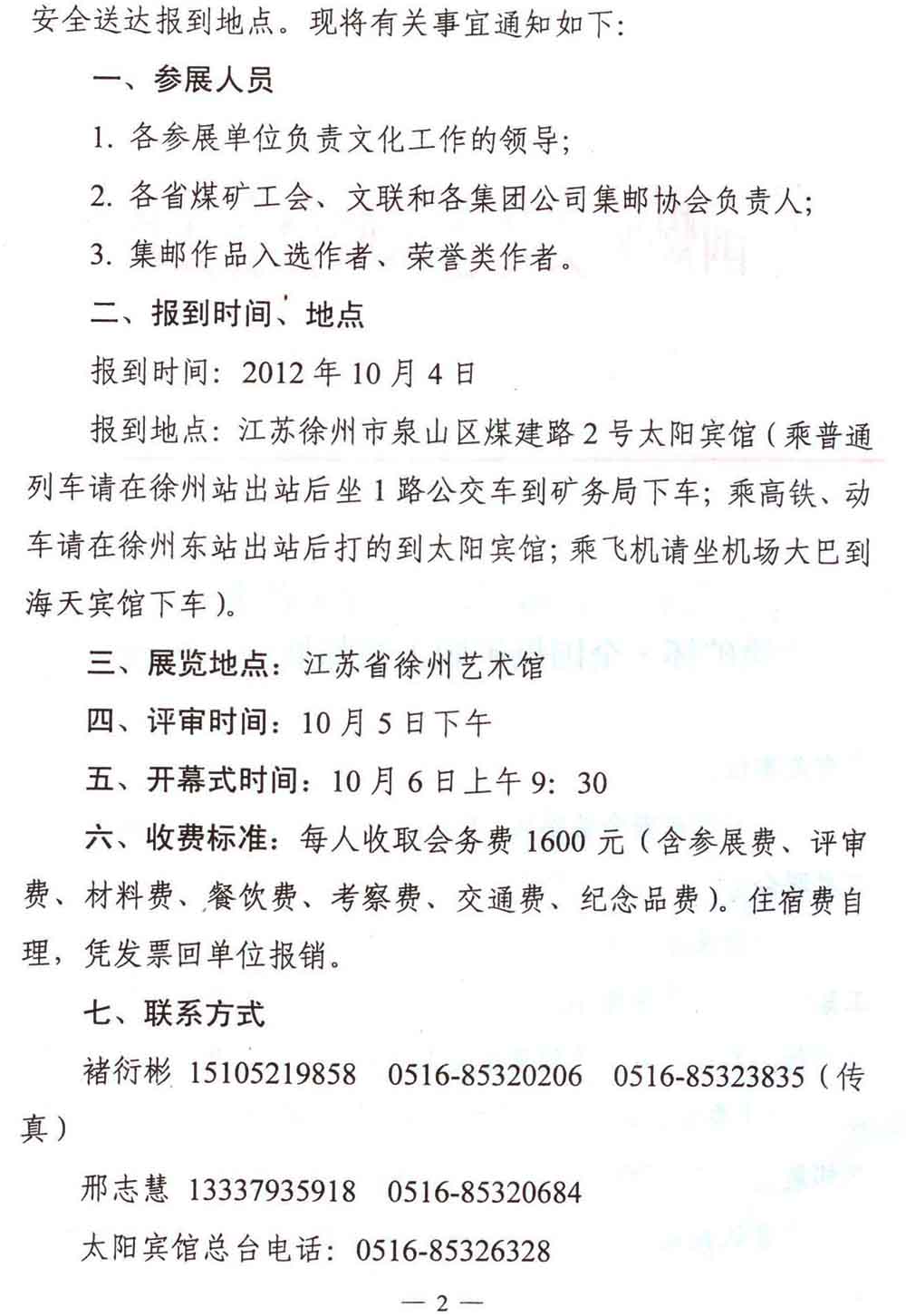 关于举办第四届中国煤矿艺术节“徐矿杯·全国煤矿职工集邮展览”的通知 来源:中国煤矿文化网 作者:煤矿文联 时间:2012-09-18 【字体:小 大】 附件2:第四届中国煤矿艺术节徐矿杯全国煤矿职工集邮展览参展报名回执 分享到: 【打印正文】