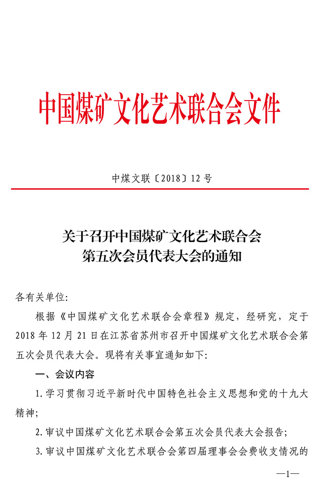 关于召开中国煤矿文化艺术联合会第五次会员代表大会的通知