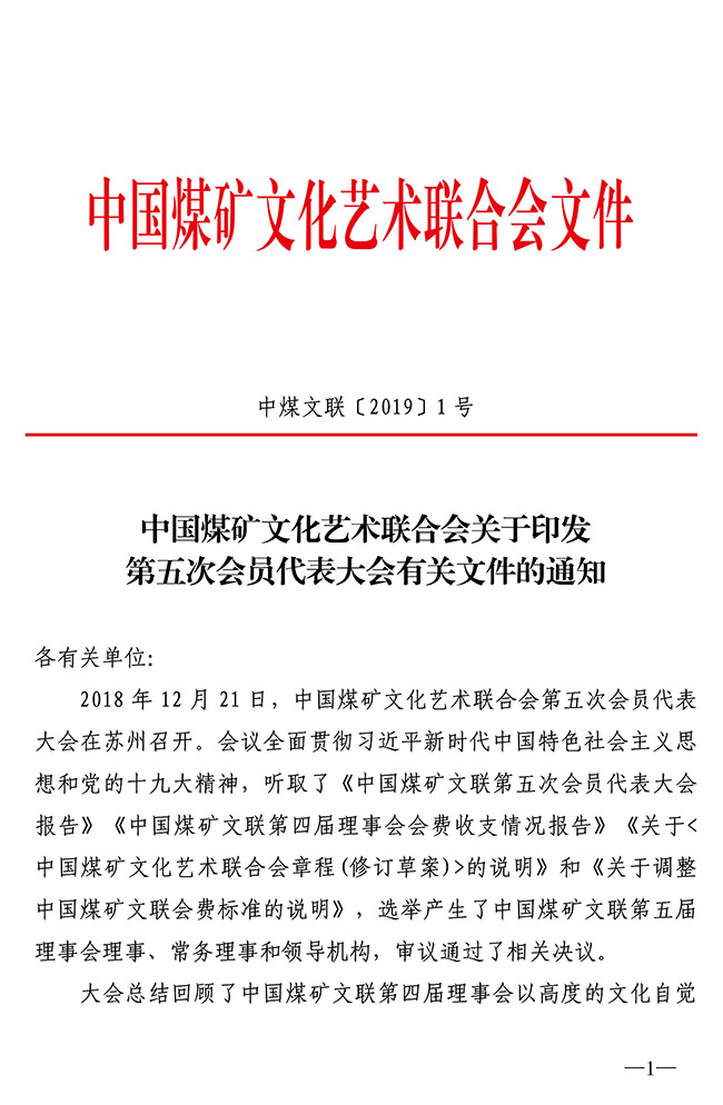 中国煤矿文联关于印发第五次会员代表大会有关文件的通知