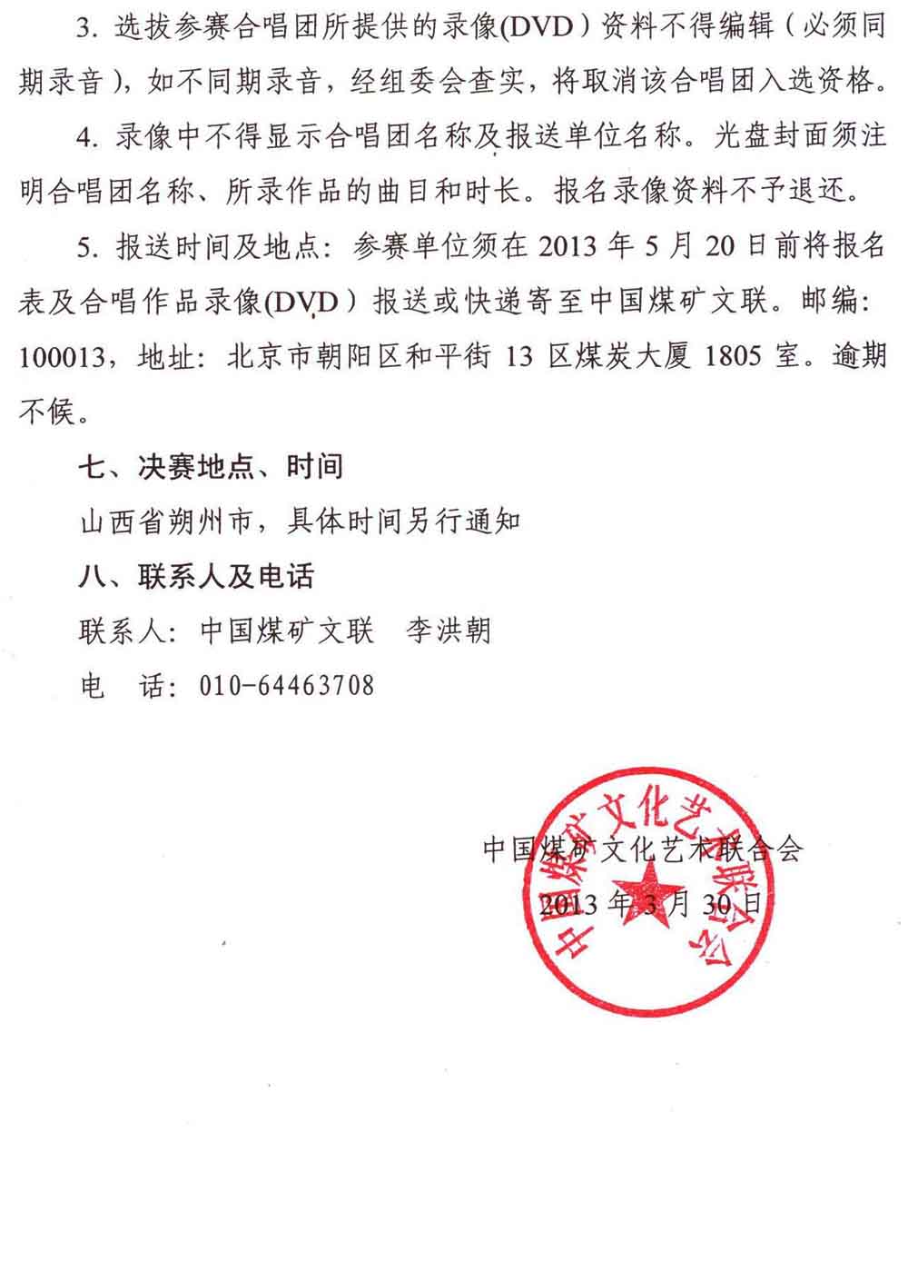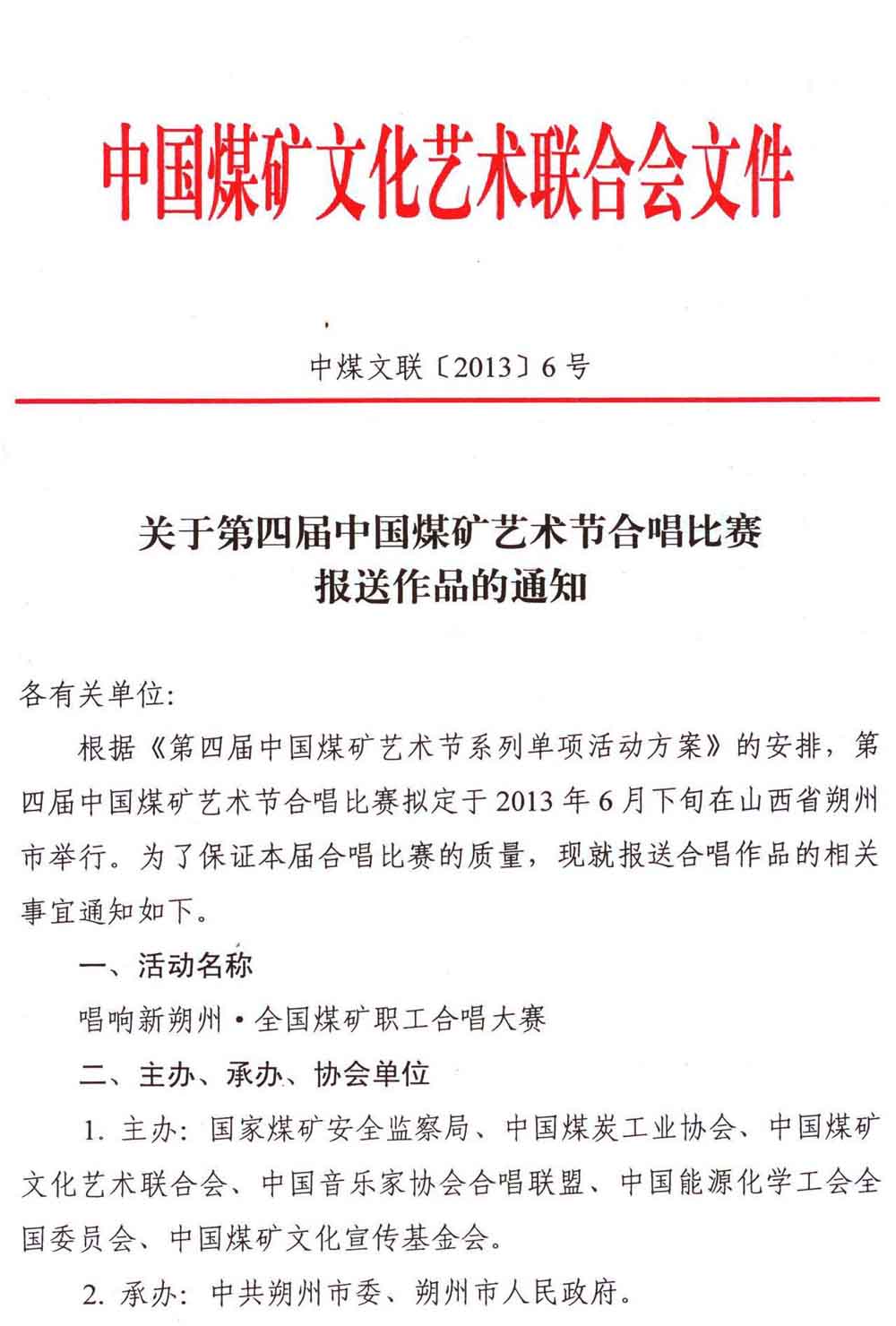 关于第四届中国煤矿艺术节合唱比赛报送作品的通知