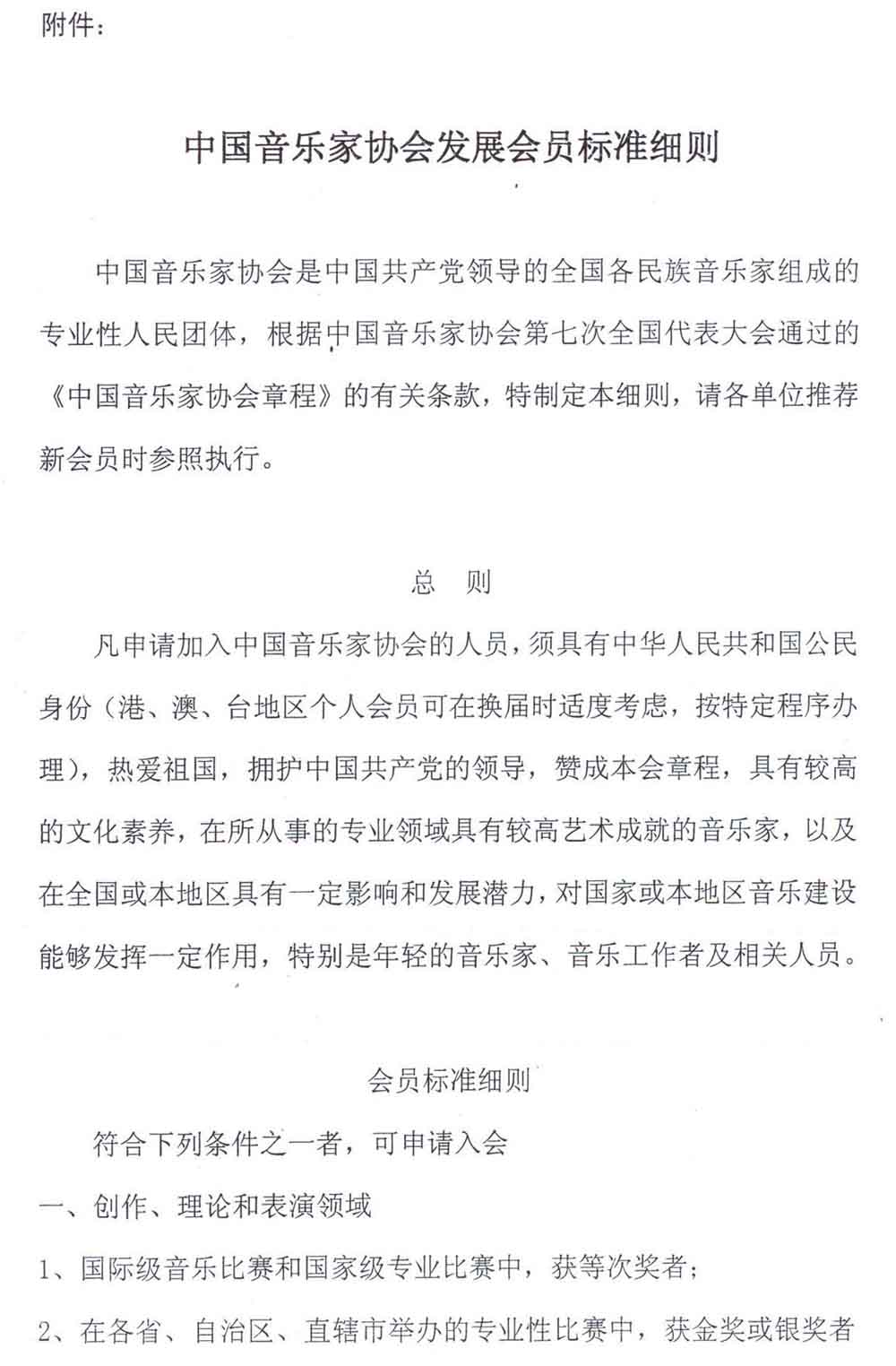 中国音协关于实施新的《中国音乐家协会发展会员标准细则》的通知