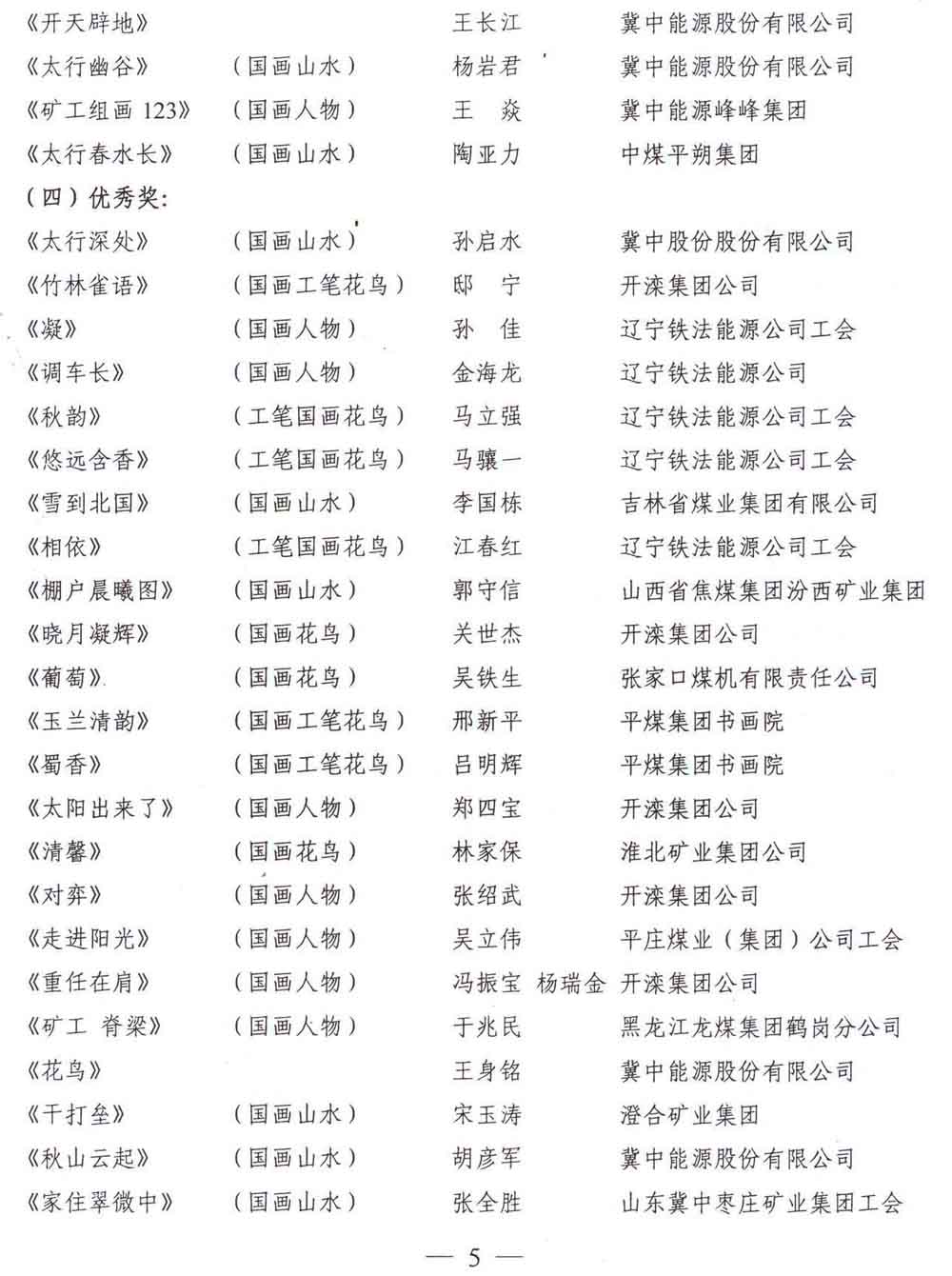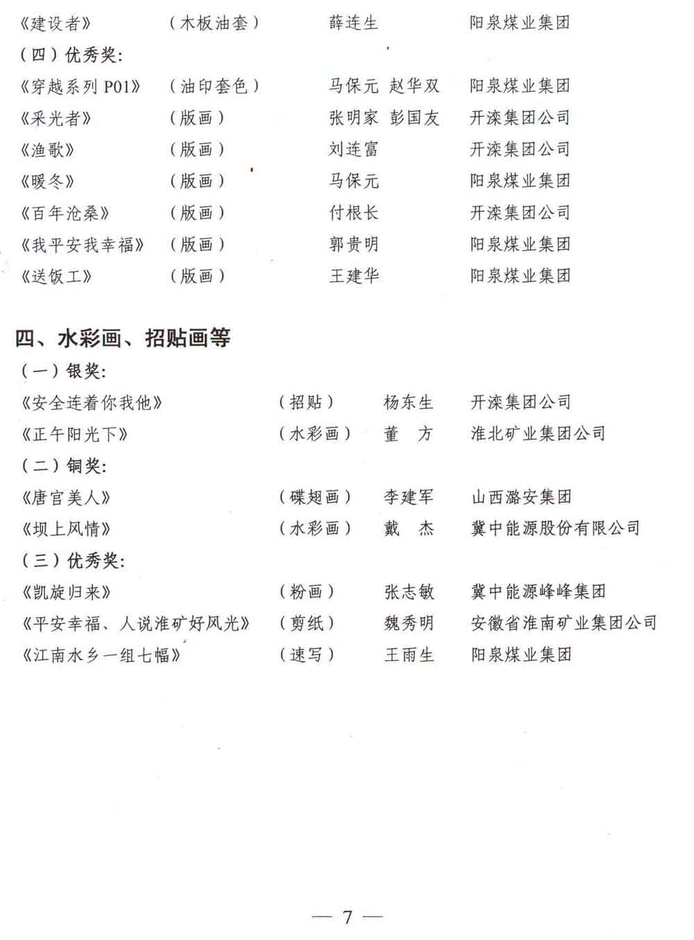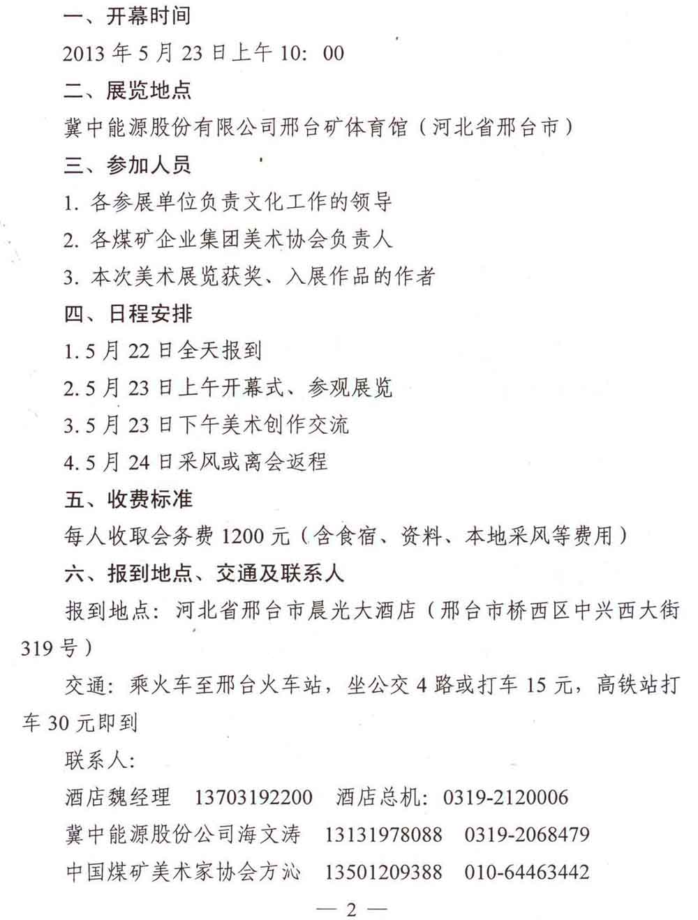 关于举办第四届煤矿艺术节“冀中股份杯全国煤矿职工美术展览”的通知 来源:中国煤矿文化网 作者:煤矿文联 时间:2013-05-02 【字体:小 大】 附件: 1.第四届中国煤矿艺术节冀中股份杯·全国煤矿职工美术展览获奖作品名单 2.第四届中国煤矿艺术节冀中股份杯·全国煤矿职工美术展览入选作品名单 3.第四届中国煤矿艺术节冀中股份杯·全国煤矿职工美术展览参展回执 分享到: 【打印正文】