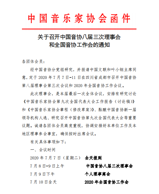 中国音协:关于召开中国音协八届三次理事会和全国音协工作会的通知的通知