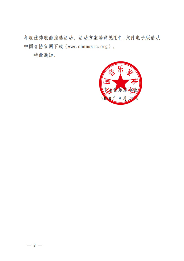 中国音协:中国当代歌曲创作精品工程“听见中国听见你”2020年度优秀歌曲推选 活动通知 来源:中国音协 作者: 时间:2020-10-12 【字体:小 大】 附件1:2020听见中国听见你方案(定版)附件2:2020听见中国听见你个人作品登记表附件3:2020听见中国听见你团体作品报送表(定版) 分享到: 【打印正文】