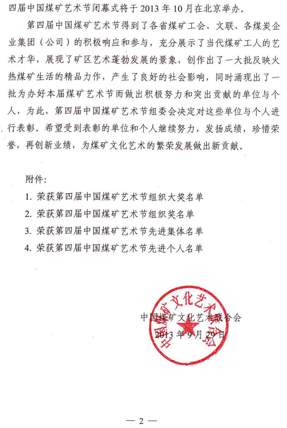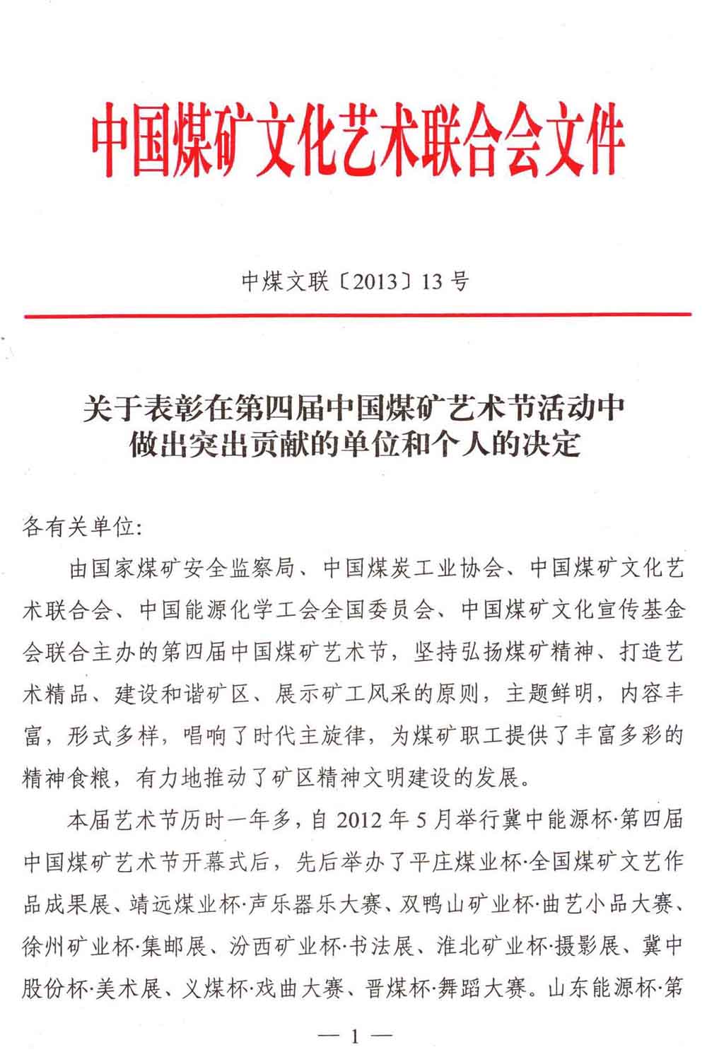 关于表彰在第四届煤矿艺术节活动中做出突出贡献的单位和个人的决定 来源:中国煤矿文化网 作者:煤矿文联 时间:2013-09-30 【字体:小 大】 附件:荣获第四届中国煤矿艺术节组织大奖、组织奖、先进集体、先进个人名单 分享到: 【打印正文】