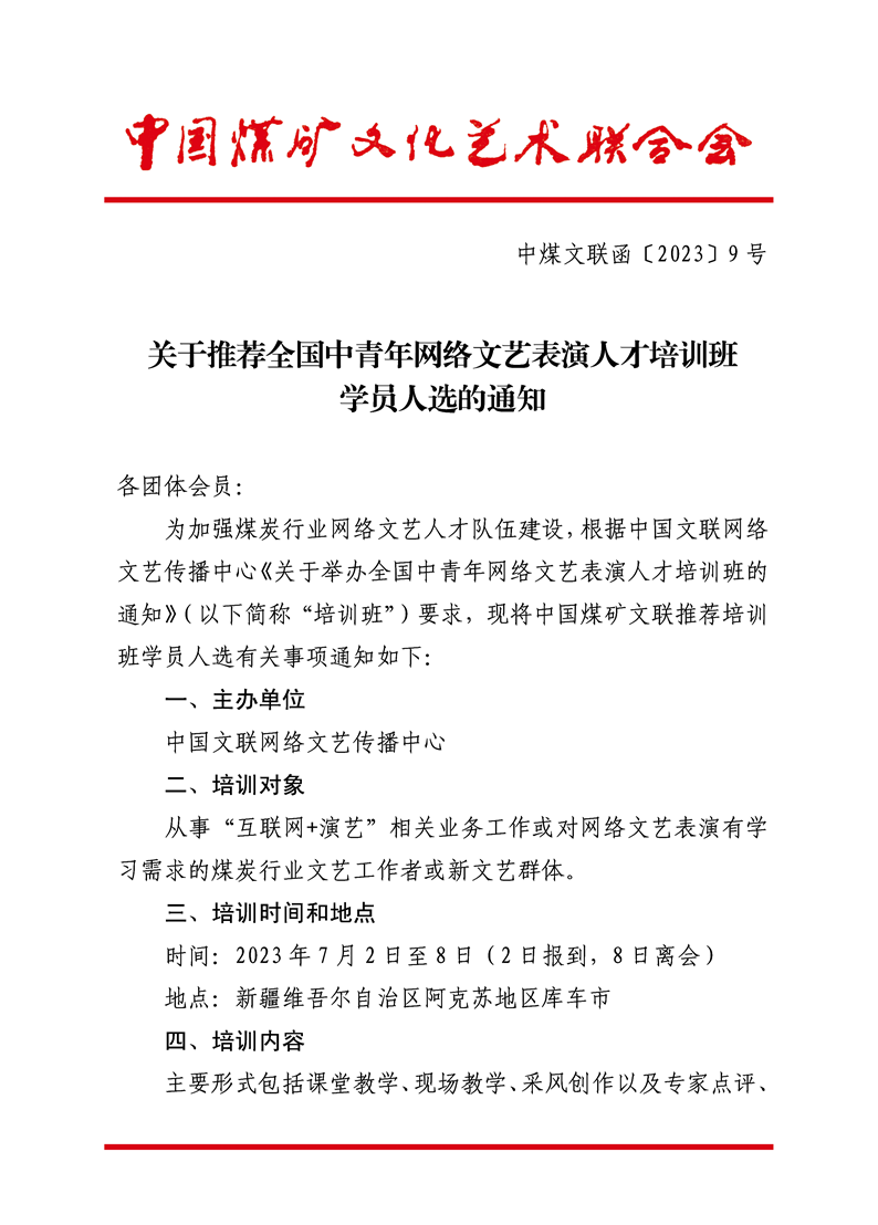 关于推荐全国中青年网络文艺表演人才培训班学员人选的通知