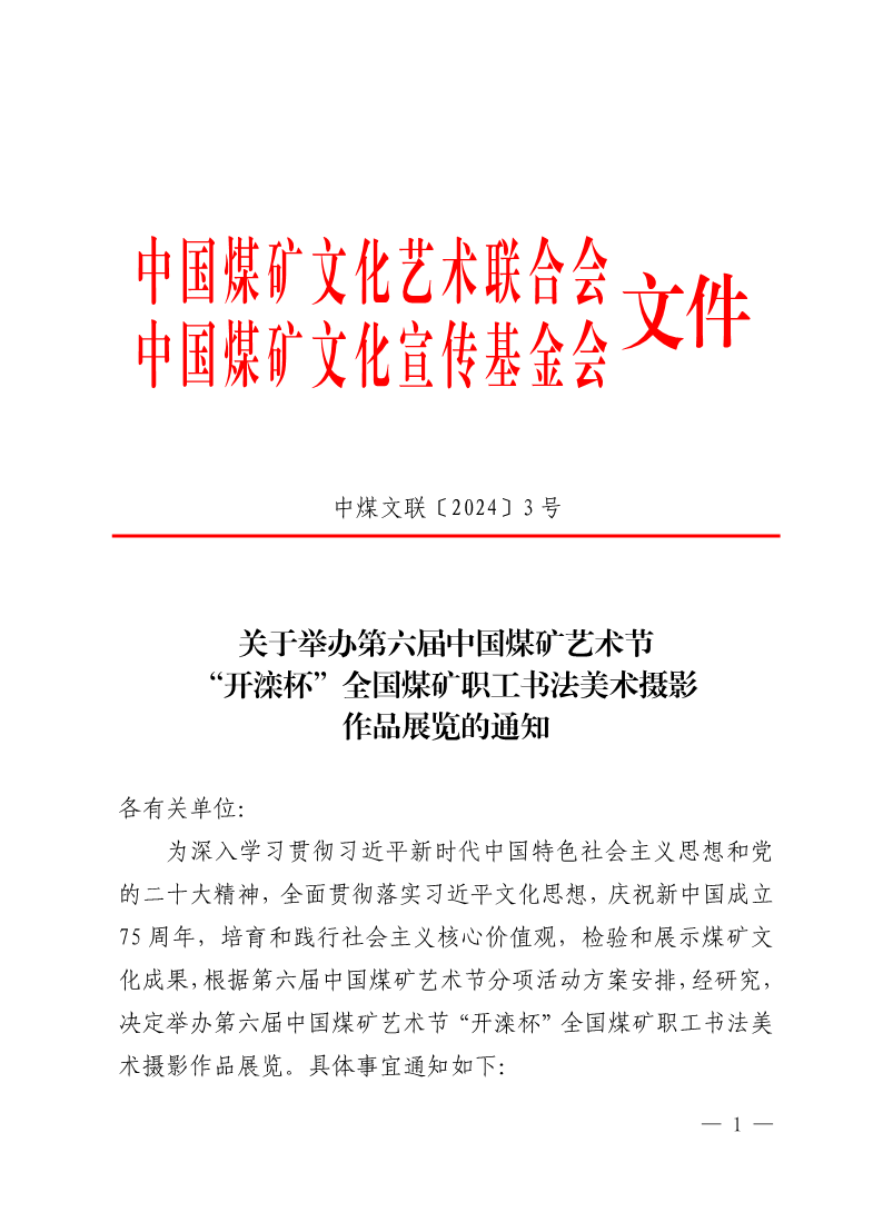 关于举办第六届中国煤矿艺术节“开滦杯”全国煤矿职工书法美术摄影作品展览的通知 来源:中国煤矿文联 作者: 时间:2024-03-08 【字体:小 大】 附件:1.“开滦杯”全国煤矿职工书法美术摄影作品展览书法作品登记表2.“开滦杯”全国煤矿职工书法美术摄影作品展览美术作品登记表3.“开滦杯”全国煤矿职工书法美术摄影作品展览摄影作品登记表 分享到: 【打印正文】