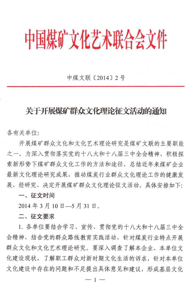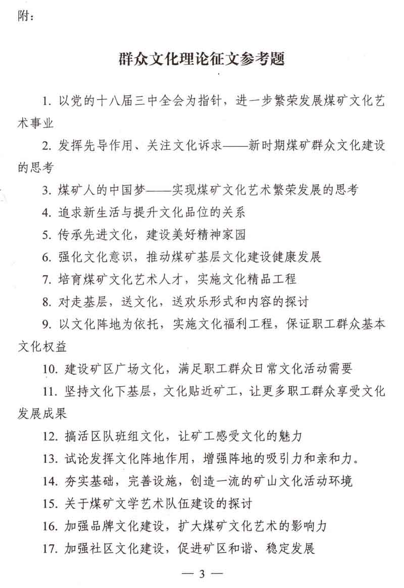 关于开展煤矿群众文化理论征文活动的通知
