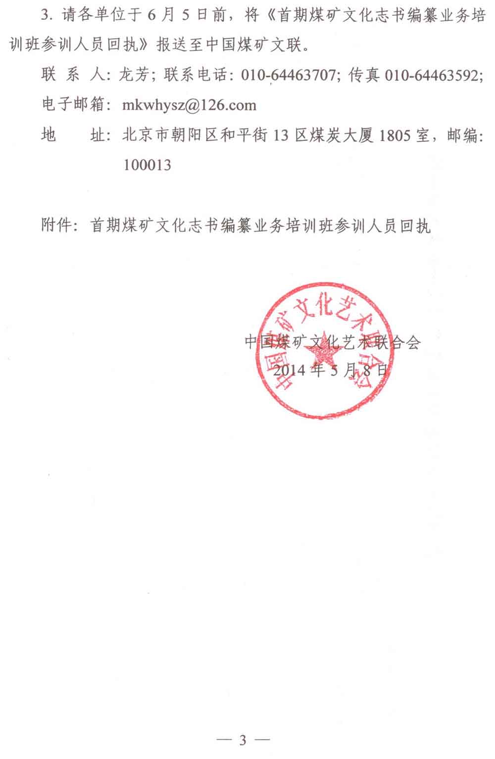 关于举办首期煤矿文化志书编纂业务培训班的通知 来源:中国煤矿文化网 作者:煤矿文联 时间:2014-05-19 【字体:小 大】 附件:首期煤矿文化志书编纂业务培训班参训人员回执 分享到: 【打印正文】