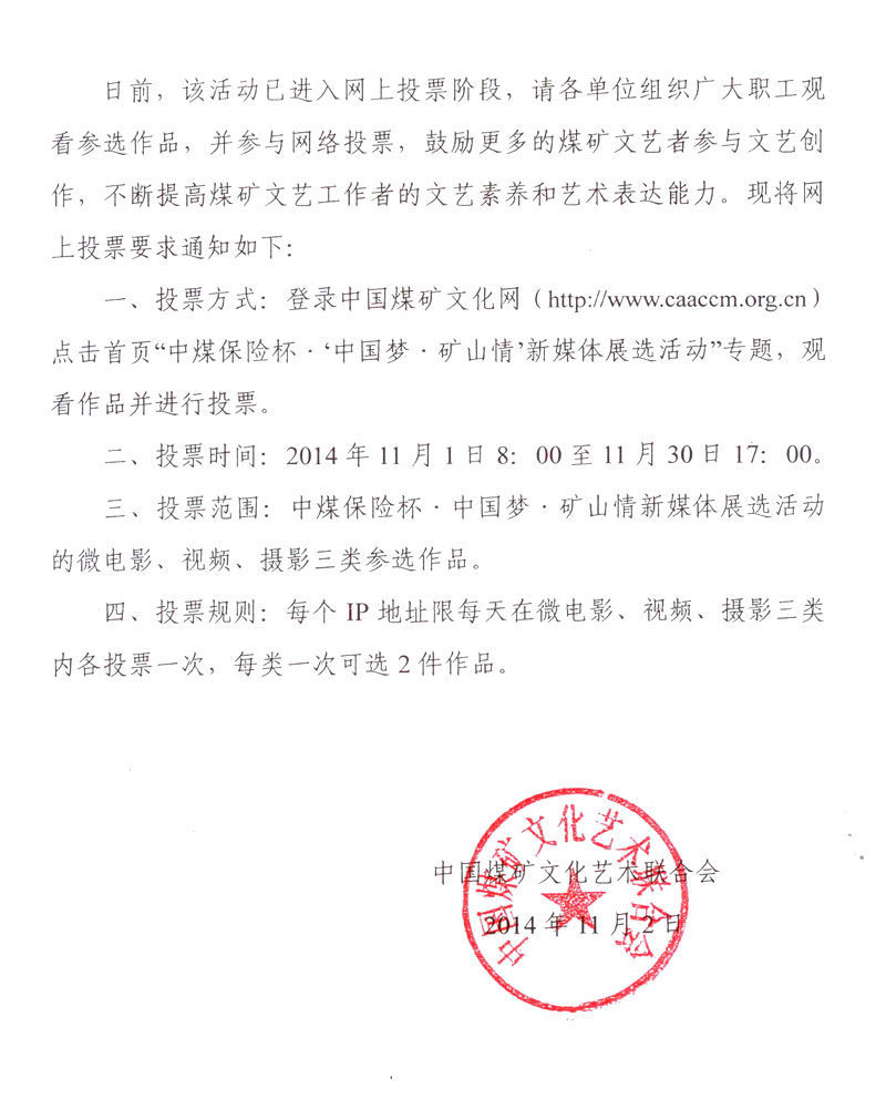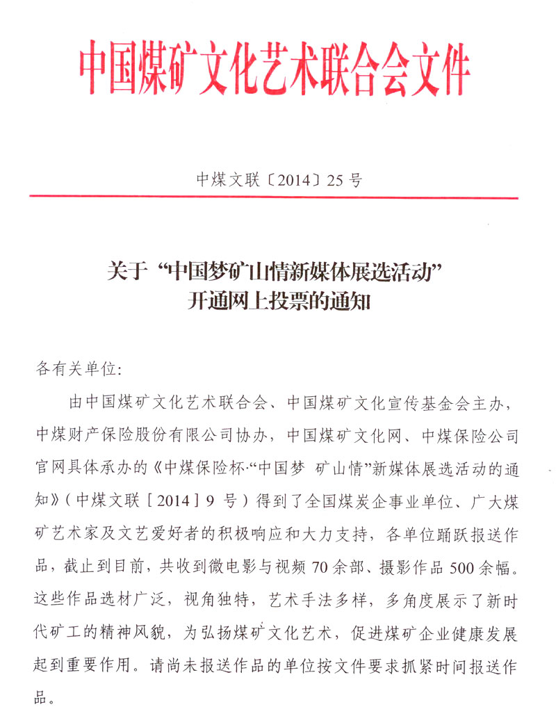 关于“中国梦矿山情新媒体展选活动”开通网上投票的通知