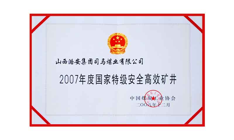 八年,司马煤业荣获“全国煤炭工业先进集体”、“全国煤炭系统文明煤矿”、“全国煤炭工业质量奖”、“全国‘安康杯’竞赛优胜企业”、全国“特级安全高效矿井”、“中华环境友好煤炭企业”、全国“企业文化安全建设先进单位”、全国“模范职工之家”、山西省“五一劳动奖状”等省部级以上荣誉三十多项。