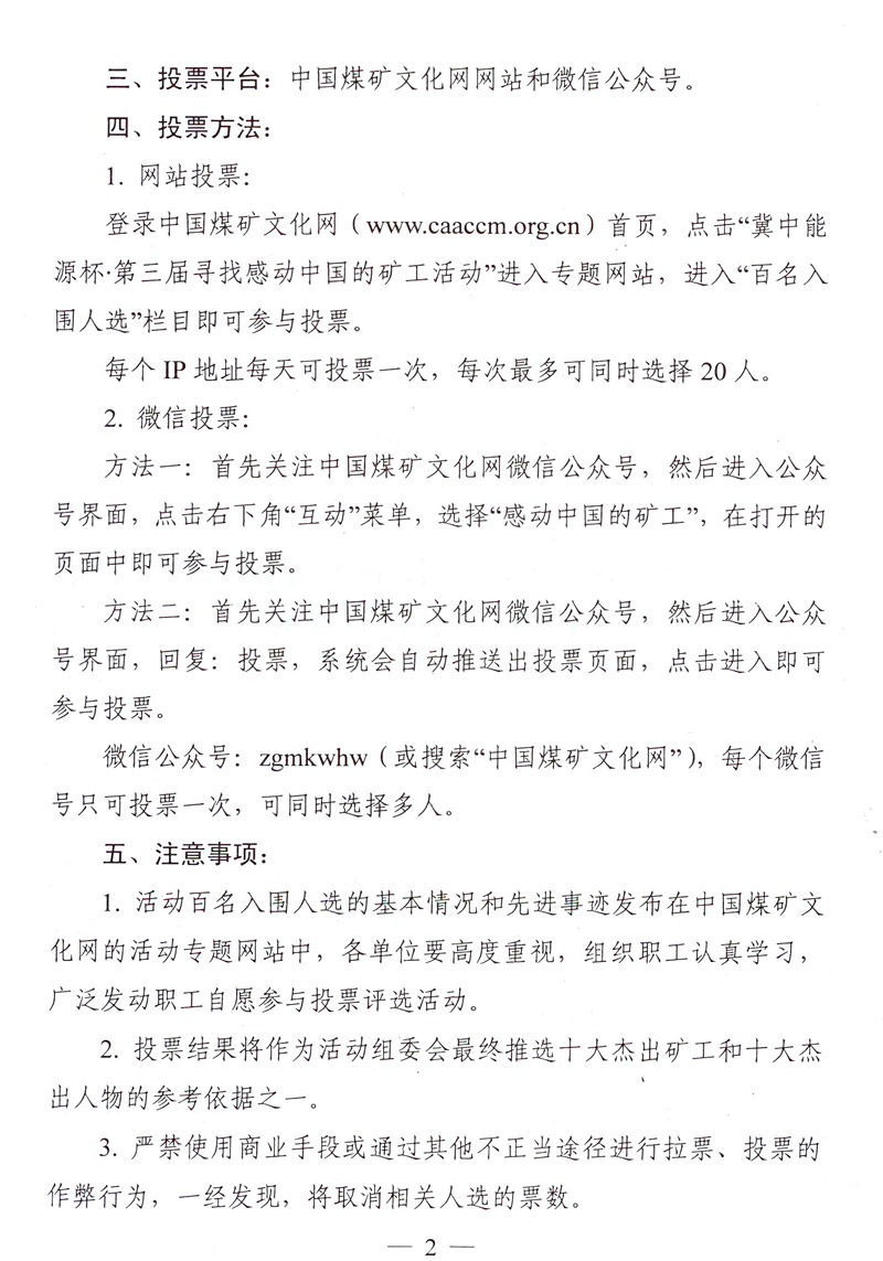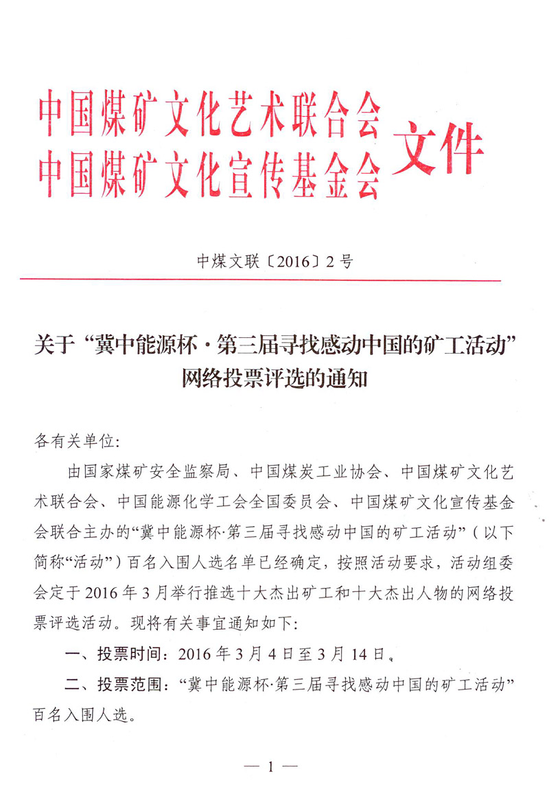 “第三届寻找感动中国的矿工活动”网络投票评选通知