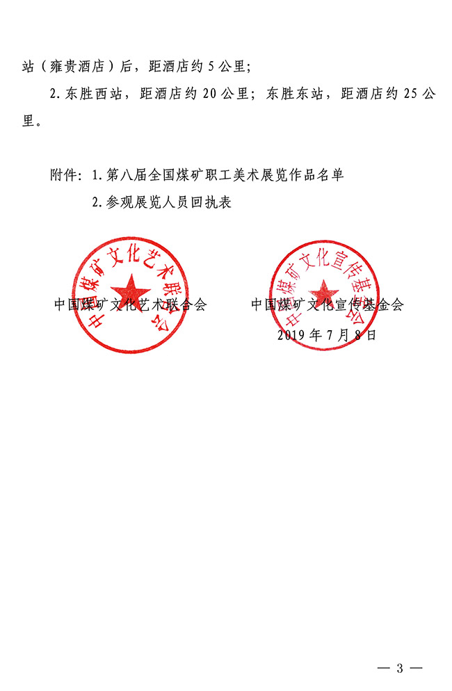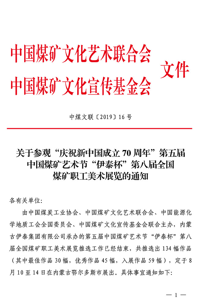 关于参观第八届全国煤矿职工美术展览的通知 来源:中国煤矿文联 作者: 时间:2019-07-20 【字体:小 大】 附件:•关于参观“庆祝新中国成立70周年”第五届中国煤矿艺术节“伊泰杯”第八届全国煤矿职工美术展览的通知(PDF版,含附件1)•参观展览人员回执表(附件2) 智能标签: 中国煤矿文联 相关内容 分享到: 【打印正文】