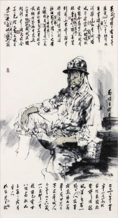 我自大学毕业后30年来少有机会对着人物直接画写生。去年3月,为了为农民工塑像全国中国画展的约稿及5月为清华大学水墨人物画研修班上课,开始重新拾起水墨人物写生。回想起当年在学生时代画模特的情景,那是有些为赋新词强说愁的感觉,是找了些道具为模特化装、生硬地摆各种动作。而这两次为农民工和矿工写生则是在生活中直接掘取鲜活的人物,表现他们历尽沧桑的形象及生活瞬间,他们给我的视觉冲击力与化妆模特是不一样的。每每下笔都充满了激情,笔下的人物当然也就生动传神,落墨时往往想到的不是对比、塑造等已有的技法概念,而是如何用画笔去贴近那些血肉之躯;用线时想到的也不是勾描那些形体,而是如何捕捉那些生动的瞬间。在用画笔与那些鲜活形象的对话中常常不自觉地触发出阵阵激情,同时每一笔下去也往往会遗憾自己的笔拙功差,不能尽如人意地表现出预想的效果,好在形象的生动总能再启发灵感的笔笔生发,又往往会将错就错地再涂抹出另类的、出其不意的效果。