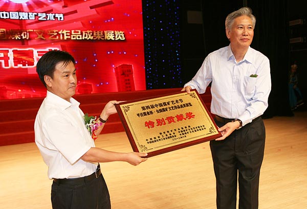 中国煤炭工业协会副会长、中国煤矿文联主席梁嘉琨在开幕式上讲话并向平庄煤业集团公司颁发特别贡献奖