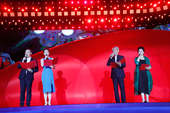 开幕式文艺晚会主持人(右起:瞿弦和、陈超、梁植、董帅)(摄影:张洁)