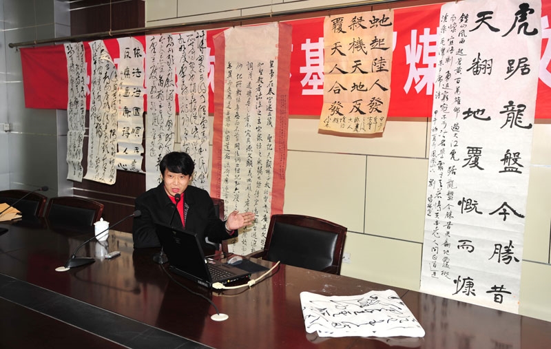 这是中国煤矿文联今年以来,为丰富煤矿职工文化生活,满足矿区职工和家属对文化艺术的需求,为矿区输送优秀的文化艺术作品而组织继赴潞安、河南焦化集团之后的第三次文艺志愿者下基层服务活动。中国煤矿作协主席、北京市作协副主席、著名作家刘庆邦,中国煤矿书法家协会副主席、秘书长盛军,中国煤矿作协副秘书长、《阳光》杂志副主编姚喜岱,中国书法家协会会员、中国煤矿书协理事李原野、杨玉剑、侯建伟参加了这次活动。