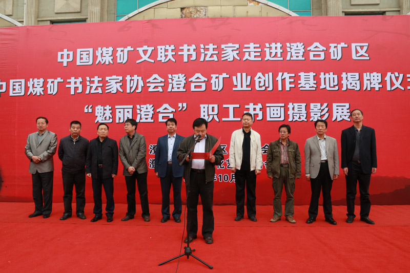揭牌仪式上,澄合矿业公司党委书记、执行董事、矿务局局长、矿区文联名誉主席叶东生发表了热情洋溢的讲话。中国煤矿文化艺术联合会副主席、秘书长张强发表了致辞。他代表中国煤矿文联、中国煤矿书法家协会向澄合矿区书法创作基地的揭牌成立表示祝贺;并希望基地的成立能更好地促进矿区书法艺术的交流发展,希望矿区广大文艺工作者能够结合实际,创作出更多的优秀作品,为广大矿工提供精神食粮。