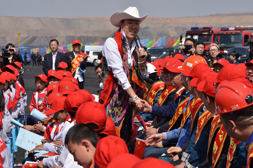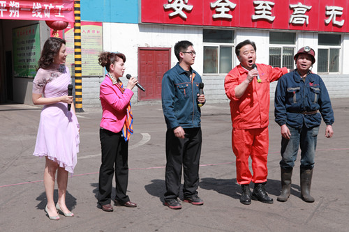 4月29日上午,由中国文联、中国文艺志愿者协会主办,中国文联文艺志愿服务中心、中国煤矿文联承办的我们的中国梦送欢乐下基层文艺志愿服务活动在中煤平朔集团安家岭露天矿举行。尚长荣、姜昆、王瑶、陈洪武、戴志诚、刘斌、李丹阳、丁柳元、魏金栋、白雪、霍勇、温玉娟、杨树泉、高保利、黄华丽、宋德全、王玉、全维润等50多位艺术家,在中央委员、中国文联党组书记、副主席赵实的带领下,为平朔这个我国最大的露天、井工联采煤炭企业的矿工和家属,献上了精彩的艺术精品。这次活动不仅给平朔的矿工和家属带来了欢笑,还极大地发挥了用文艺凝聚人心,用文艺鼓舞士气的巨大作用。