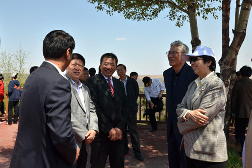 中国文联党组书记、副主席赵实(女)、中国煤矿文联主席梁嘉琨(右二)、中煤集团总经理助理、平朔集团党委书记刘勇(中)在一起交流这次活动的体会与收获